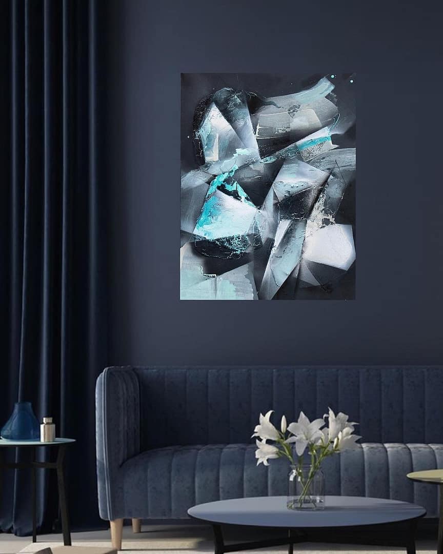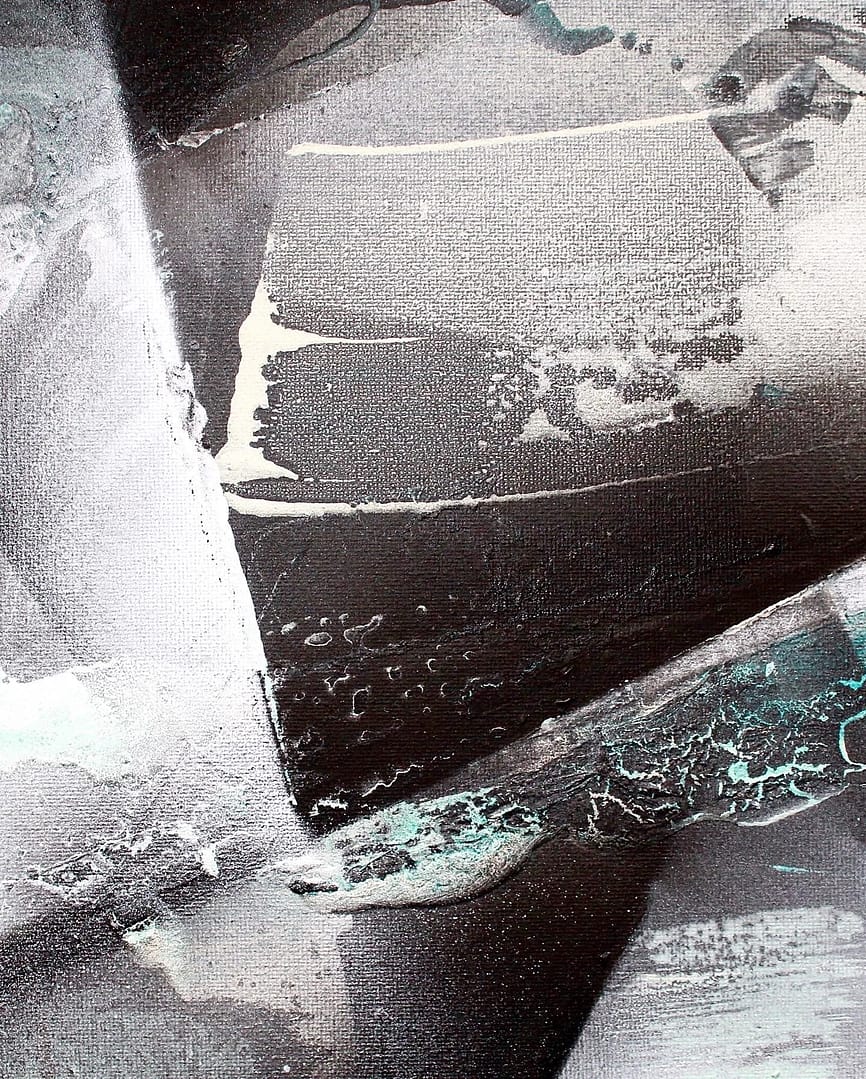 Mouvement intérieur 80x60cm Peinture sur toile Technique mixte Outils: acrylique, aérosol, couteaux